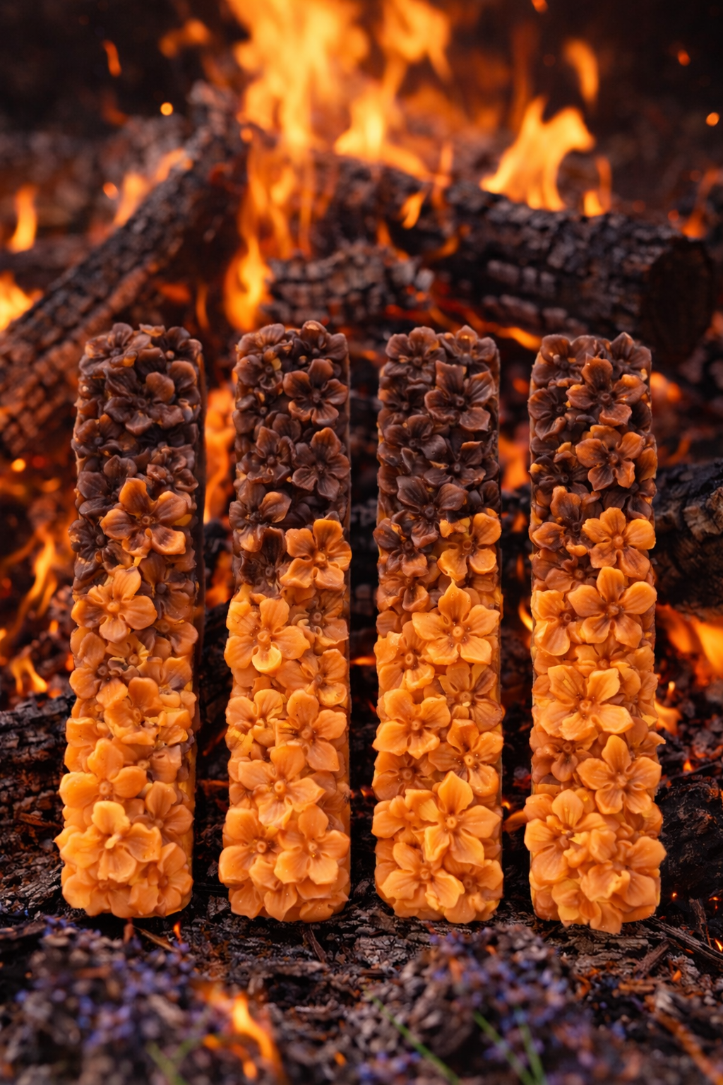 🔥🌸 Installez une atmosphère chaleureuse et enveloppante avec ce lot de 4 barres fleuries, parfum feu de bois.