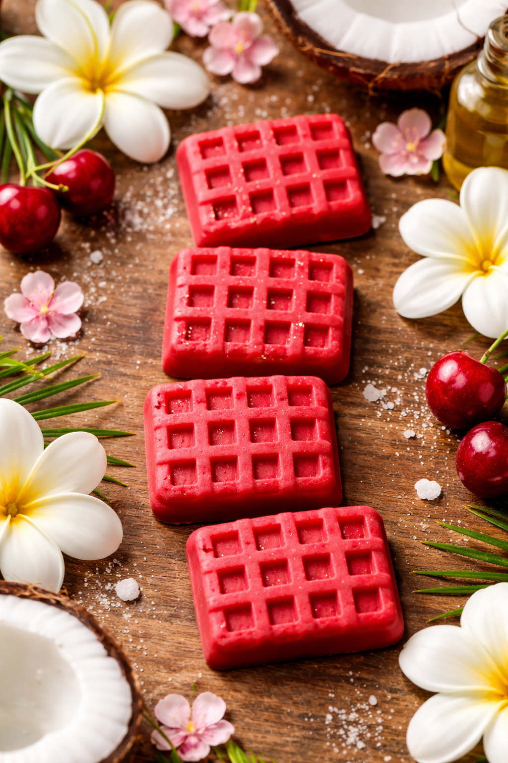 Offrez à votre intérieur une parenthèse ensoleillée avec ces quatre fondants au monoï cerise, une alliance délicieusement exotique et fruitée qui diffuse une senteur chaleureuse et réconfortante, parfaite pour créer une ambiance douce, gourmande et dépaysante, comme une invitation au voyage et à la détente à chaque instant✨🕯️